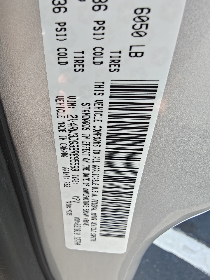 Vin: 2V4RW3DG3BR695569
