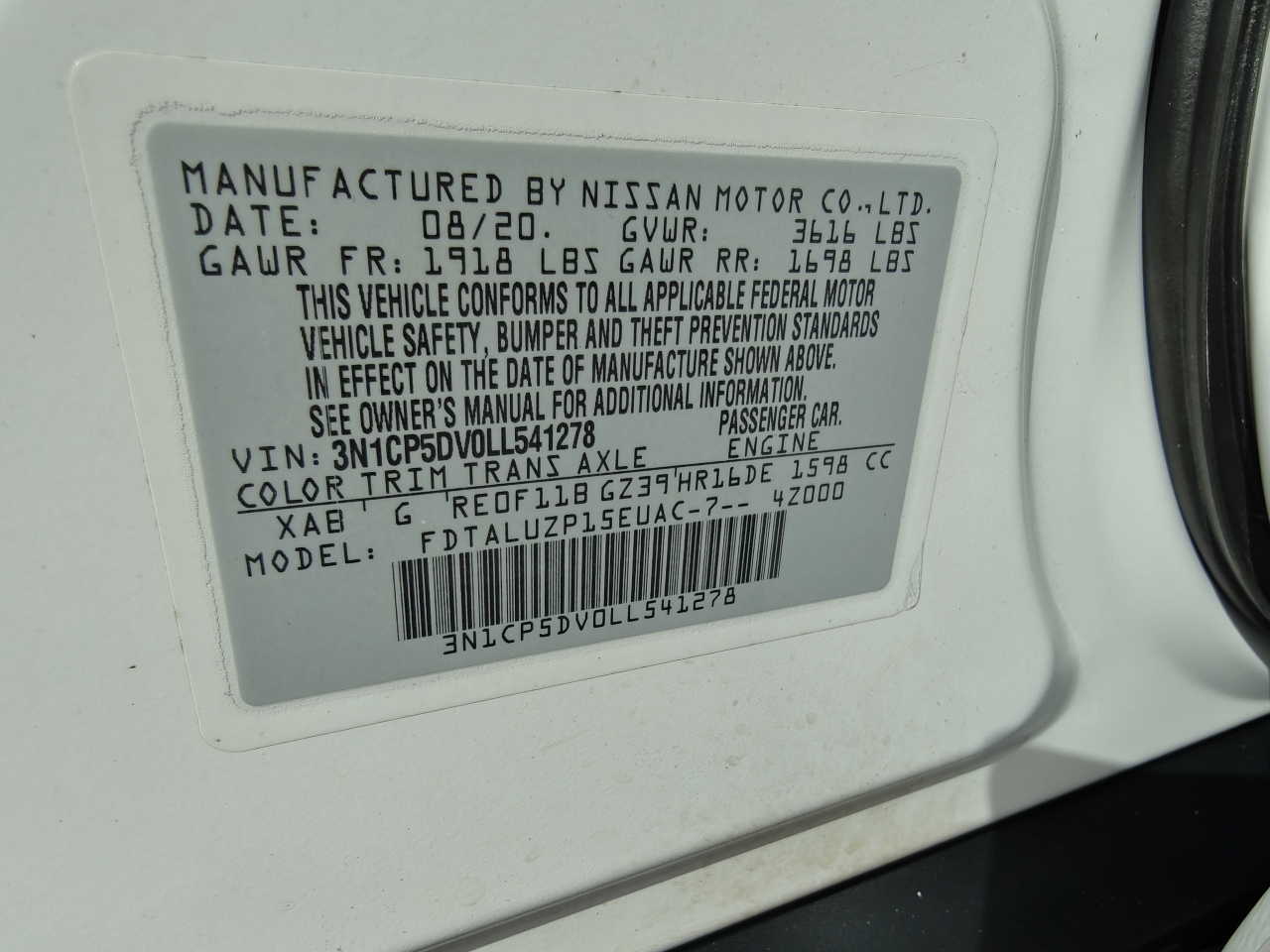 Vin: 3N1CP5DV0LL541278